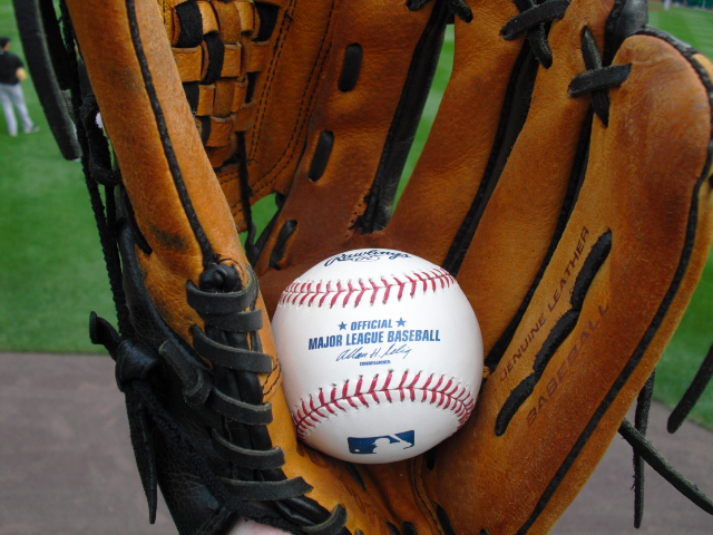 After I had realized how awesome the weather was, and how empty the park was, something very peculiar, yet very amazing happened. The same group of pitchers, which I was previously upset with in centerfield because they hadn’t thrown me baseballs, and then happy with because they cheered for me after catching the home run, were still there. And Vinny Rottino, a September call-up and backup backup catcher (no typo), hit a hard line drive heading to center. The ball was clearly going to land in the batter’s eye beyond the outfield wall. But Clay Hensley, who was in that group of pitchers, threw his glove up and knocked the ball down. He did it so nonchalantly that is was hilarious. He and the other pitchers started cracking up. The comical event was cheered/laughed for by the few who saw it.