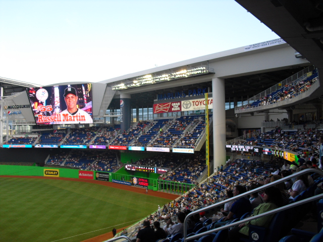 Speaking of mistakes, I’m sure Jeffrey Loria is kicking himself for not making the right-center field fence about 10 feet shorter. In fact, the fences could use some moving in at every position. To dead center, the park is 418 feet, one of the longest in the game. Left field is a rather deep 340, especially with the relatively high fence. In the bottom of the 7th, Giancarlo Stanton drilled a fly ball to right-center field, but it was tracked down at the fence by John Jay, probably 400+ feet from the plate. That’s a home run at most major league ballparks, and if Stanton decides he likes hitting the gap in right-center, he has to make sure to hit line drives because there is a ton of running room for the outfielders to catch anything that hangs up.