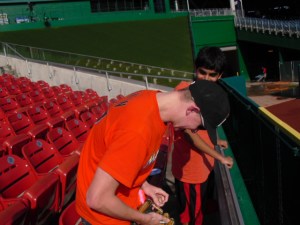 There were too many kids at the bullpen, and I did not want to seem obtrusive or obsessive, so I departed, satisfied with the five balls I had kept. I snagged a total of ten balls at this game. I kept five of them, and gave five away simply because I’m not an advocate of big people competing against small people for baseballs.