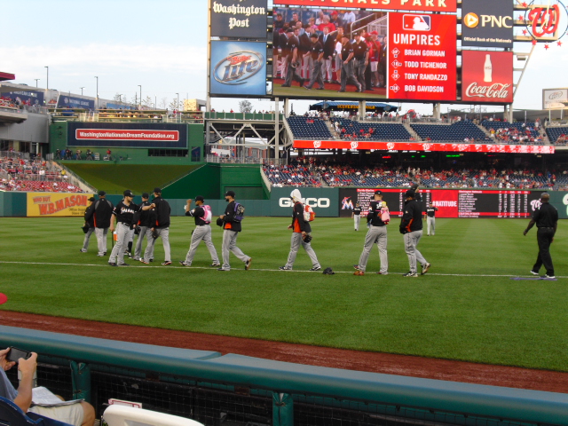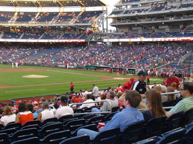 action or the end of a half inning. I have sat in similar locations plenty of times previously, yet I had never noticed that particular habit of fans before. Here’s what I am thinking: When the Nationals were bad, or at least mediocre, only hard-core baseball fans would flock to the ballpark to see the team host another bad/mediocre team like the Marlins. Now that the Nats are winning and are going to make the playoffs, tons of fans will come to see the team play. These new fans are probably unfamiliar with ballpark etiquette and have no clue how annoying it is to get up in the middle of an inning.