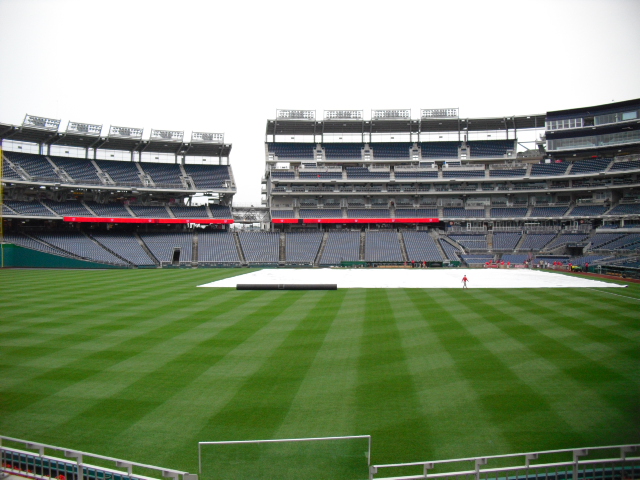 A side note here: Nationals Park over its short history has been notorious for weird policies and inconstancies in fan treatment. Instances range from events dramatic as Zack Hample’s ejection for a completely fabricated accusation, to things seemingly trivial like section guards checking tickets in the upper deck while the park is half-empty. For this game, the staff was surprisingly pleasant and cordial, and we were never questioned before the game while exploring different sections. But for some strange reason, the guards felt the need to persistently remind us that batting practice was cancelled whenever we entered a new section, as if we couldn’t tell by the huge tarp on the field. They must have not known any reason why fans would want to be in the outfield seats without BP going on. It was rather perplexing.