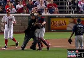 In the top of the 8th, Harper returned to the dish and was hit in the shoulder blade on the first pitch from reliever Luis Avilan. The pitch was more than a “come at me” shot. There was bloody-intent. The Atlanta crowed cheered again, even harder than the first time he was hit. Washington announcer Bob Carpenter was furious over the response of the entire Braves franchise, and called the fans “blood-thirsty.”
