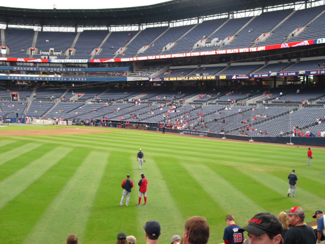 Shortly thereafter, the Braves righties started peppering the left field seats, which were even more crowded by this point. I figured I’d at least give it a shot, so I headed back over to left field. Of course, as soon as I found a decent spot, the lefties came back up again. I don’t think this was so much bad luck as it was merely me not knowing how to play the stadium.