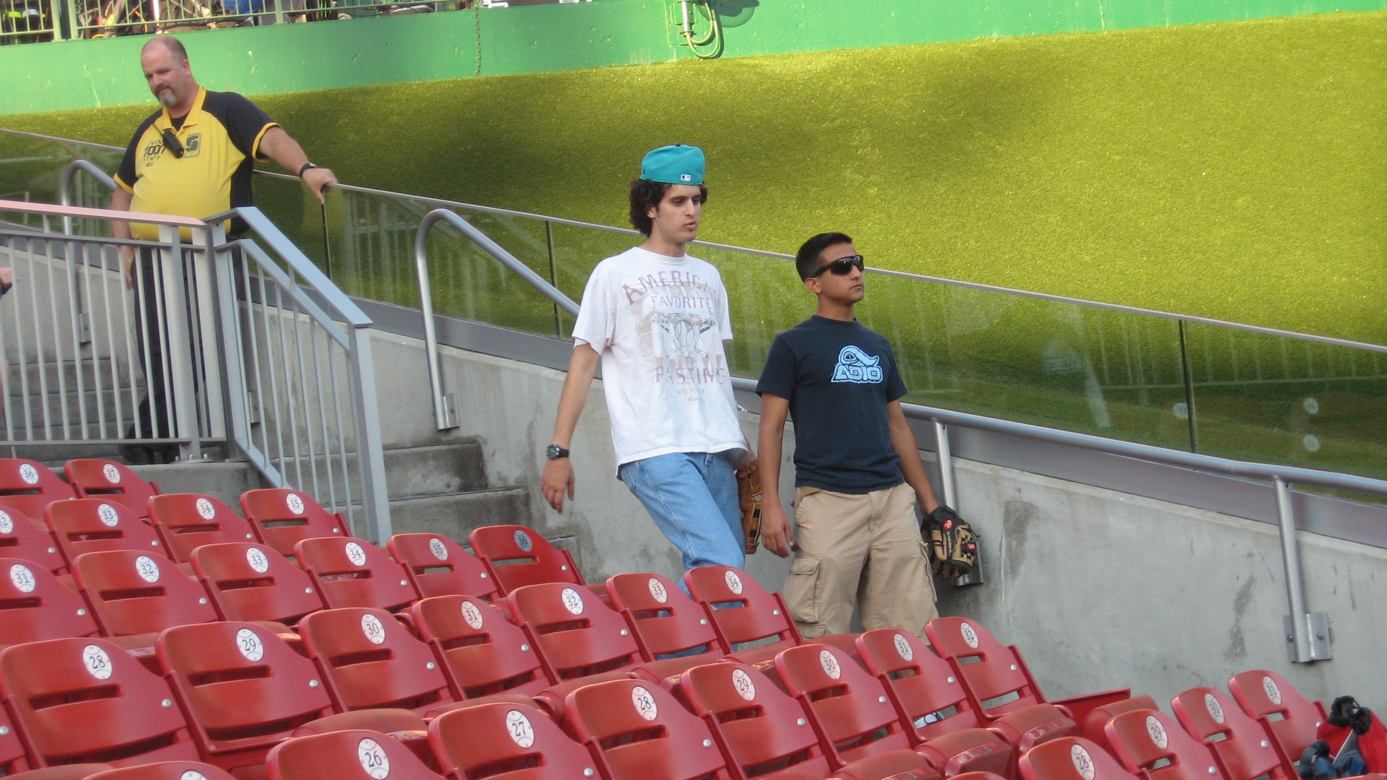 I turned around to take a picture, and Jack was telling me to put away the glove trick. Why? A fan behind him, who I later learned is an acquaintance of Zack Hample, had said that he had his glove confiscated earlier this season for doing the same. He pointed out to me the security guard, whom I did not recognize, that had busted him.