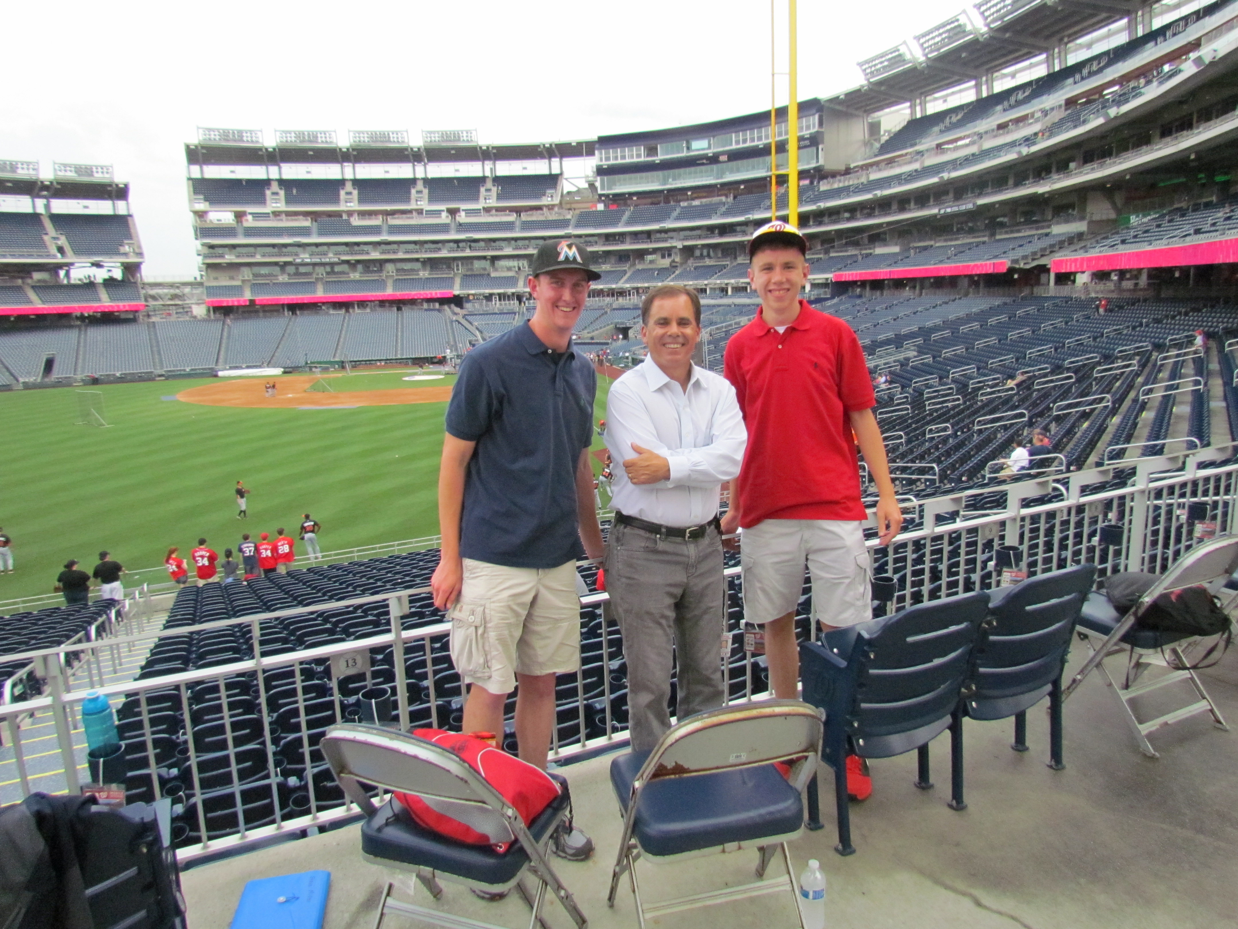 At 4:30 we arrived at Nationals Park and met up with Jageler in left field. We sat down behind section 105 and chatted for about half an hour. A little after 5:00, Rich came down and met with us in the same spot. Batting practice was going on during these interviews, which seem to be made better by the baseball white noise that can be heard underneath the voices.