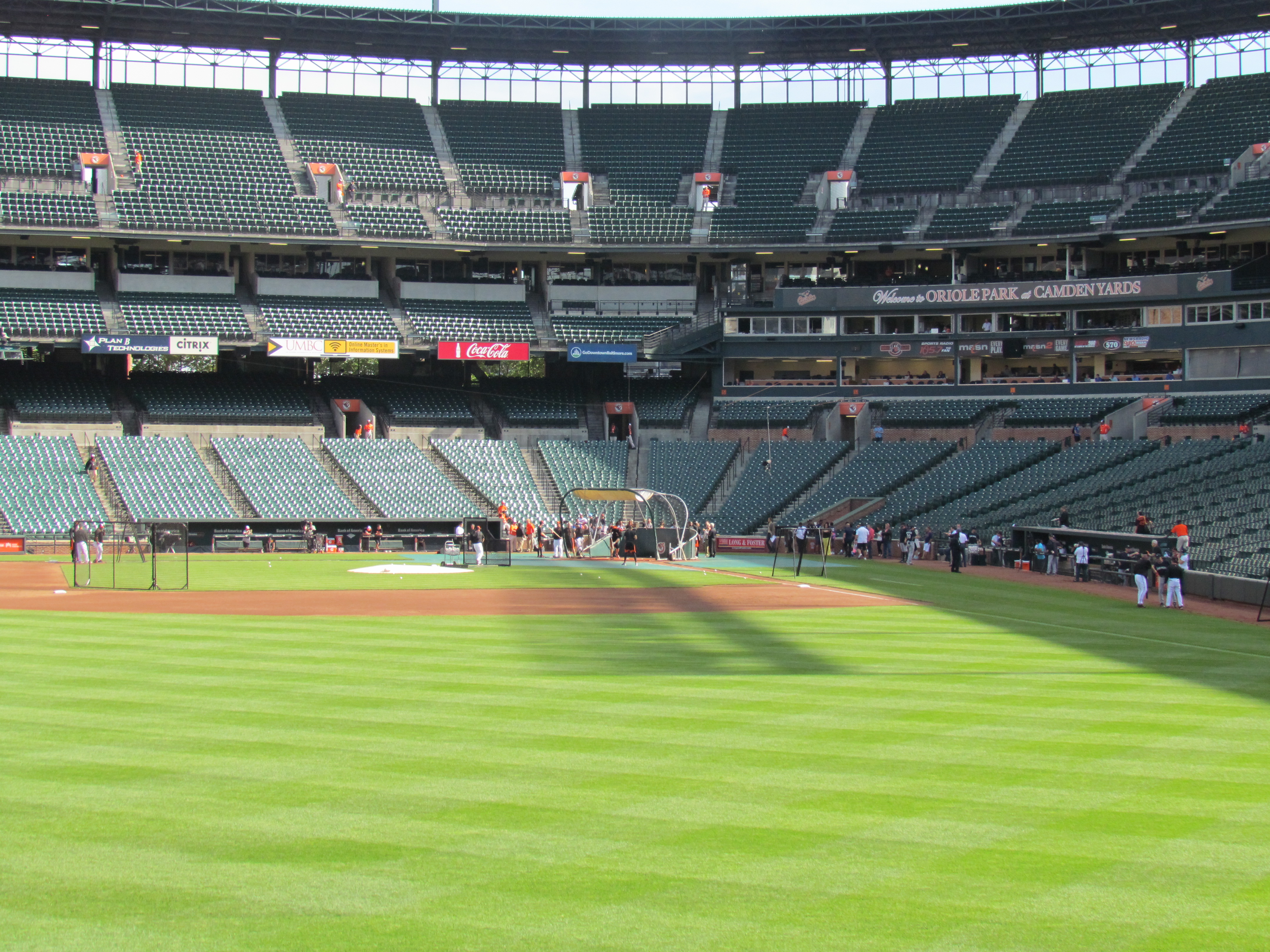 Further, Oriole Park is better for batting practice than both PETCO and Safeco. There’s more left field seating as well as the flag court in right field that provides an open space for batting practice maneuvering. It’s also a bit easier to navigate than PETCO. The warehouse decorating right field is a unique feature and defining characteristic. Finally, the fans and ushers are both of utmost friendliness. All things considered, Oriole Park at Camden Yards now ranks #2, behind PETCO and in front of Great American and Safeco. The #5-11 parks are, in order: Fenway, Minute Maid, Marlins, Nationals, Dodger Stadium, Turner Field, and RFK Stadium.