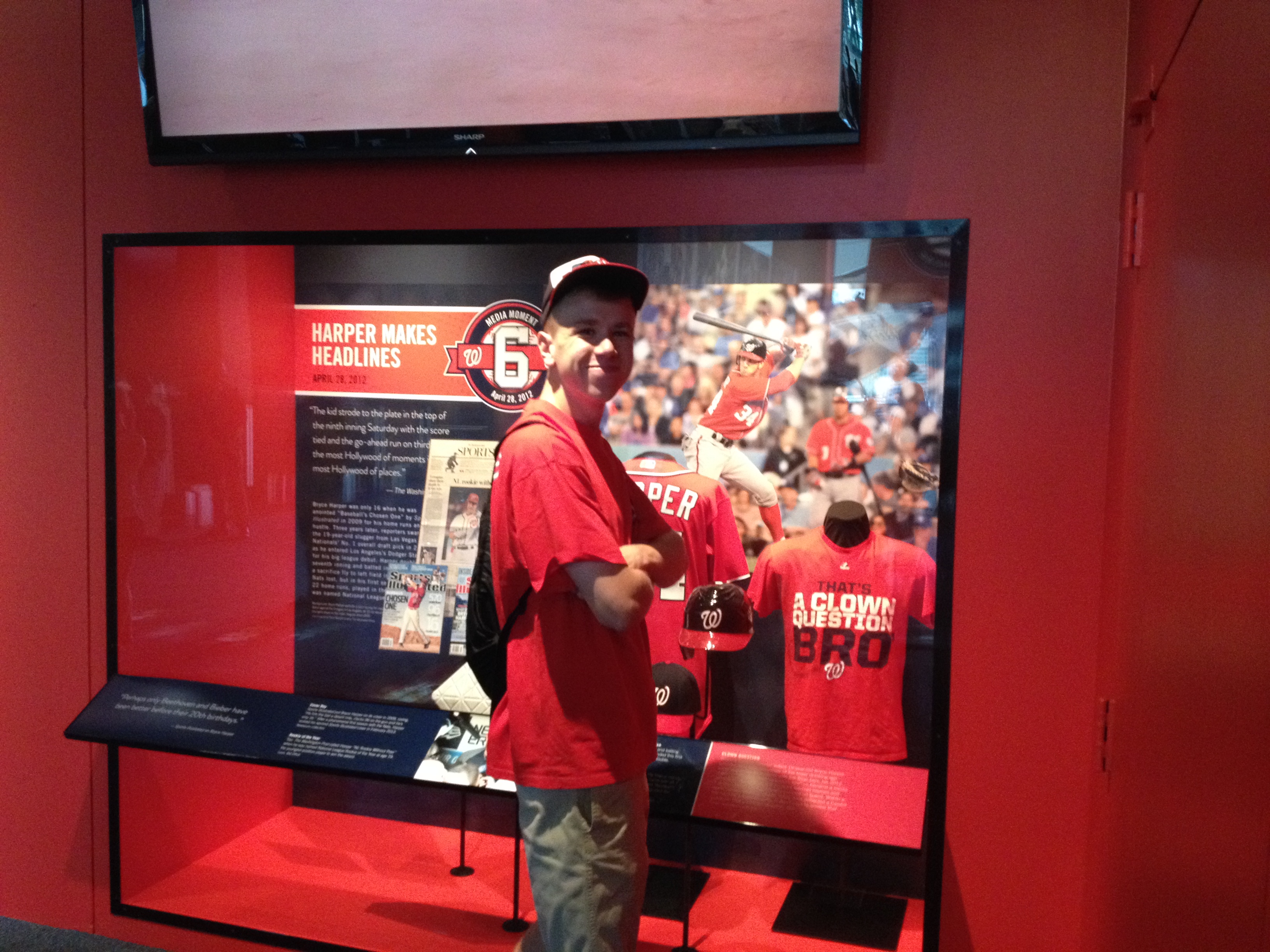 We met up at the Newseum (the museum of news, go figure) where there is a brand new exhibit commemorating the 10 years of Nationals baseball in Washington, D.C. The exhibit was small, but well put together. There’s memorabilia from Opening Day 2005, Ryan Zimmerman’s walk off to christen Nationals Park, and even Max Scherzer’s no hitter from earlier this season. Paul had a good time, and was that guy who read everything.