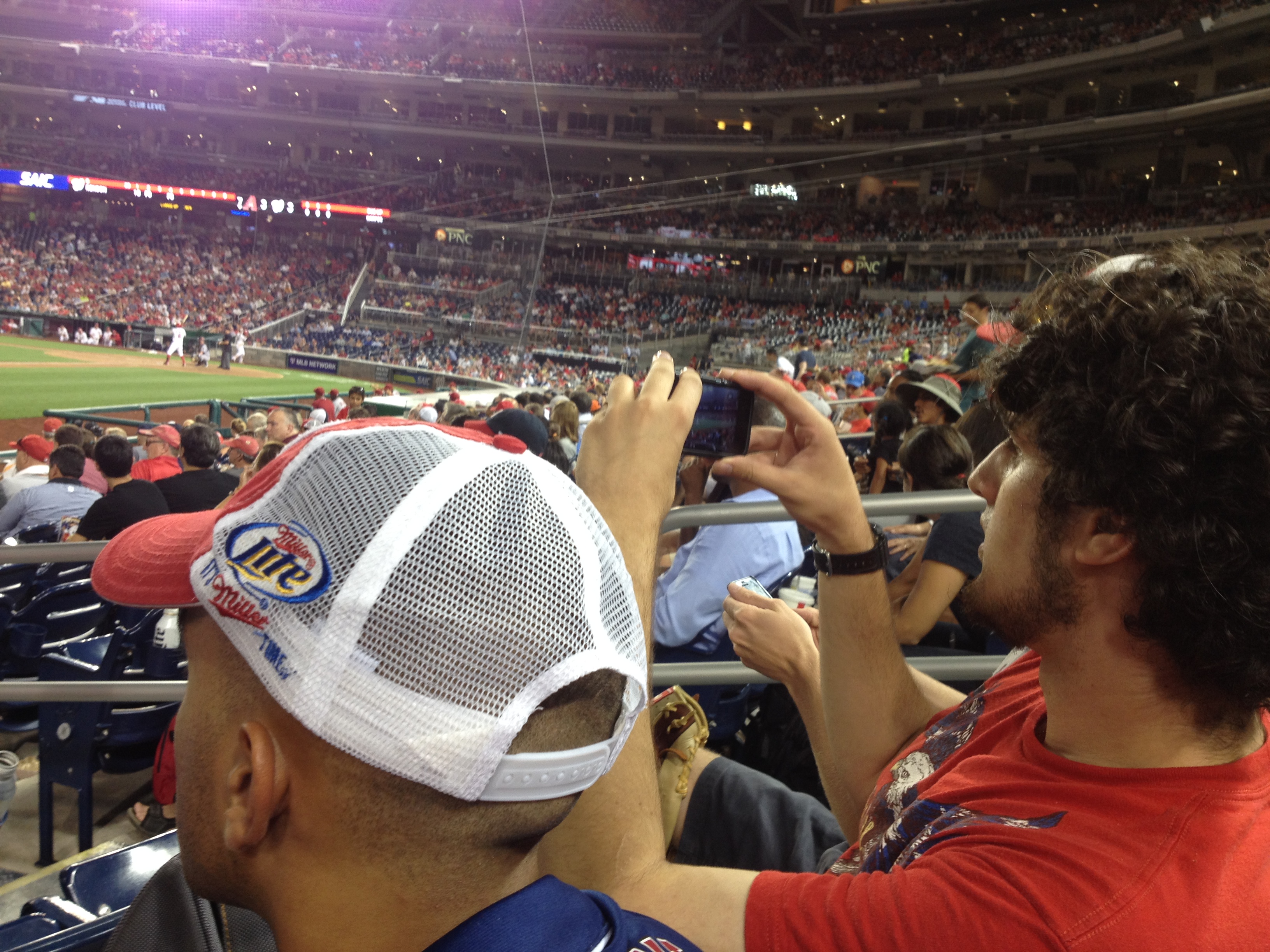 For the second time in as many nights, Paul and I ventured to Nationals Park. Tuesday we were accompanied by Jack and Ben, both of whom went to our high school. We were looking to snag during batting practice and change the Nationals’ fortune as they had lost the previous four games.