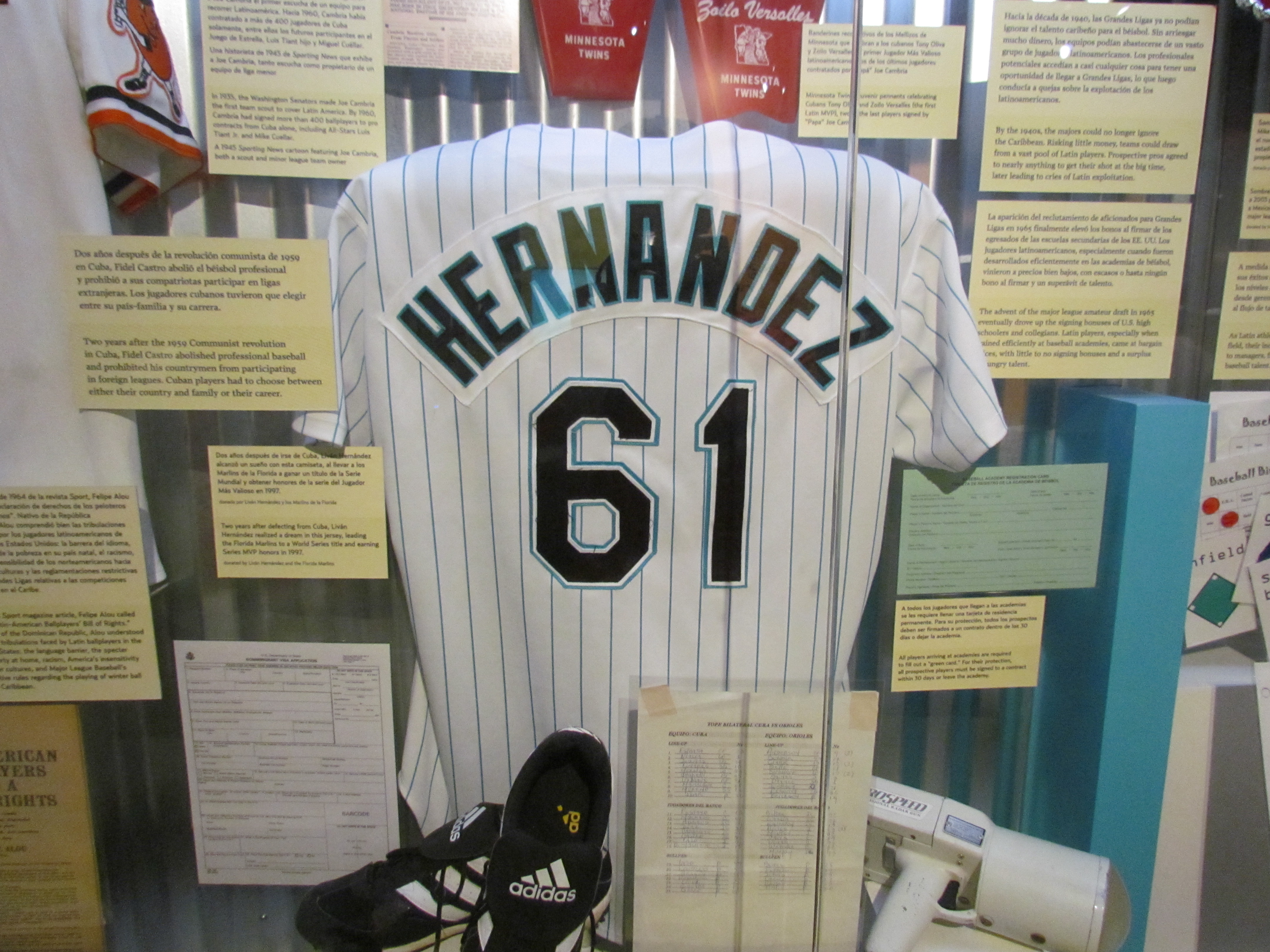 One of my favorite players of all-time is honored in the Viva Baseball! exhibit, celebrating the Latin American stars of the game. The Marlins jersey was worn by Hernandez during the 1997 World Series, of which Livo won the Most Valuable Player award.