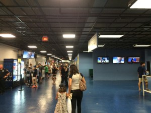 At a lull in the action, we made our way over to center field where a half dozen rays entertain themselves in a modest tank by swimming in circles to avoid the grimy hands descending on their dwelling. I’m sure PETA has written many letters over this spectacle.