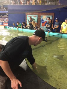 “When do we get to pet the stingrays?” Nic pleaded after she learned I hadn’t been joking about the live stingray touch tank inside the stadium.