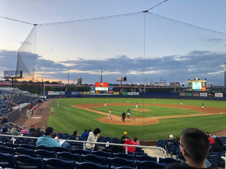 Behind left field, I-95 snakes around the stadium and lights up the field of vision with vibrant orange cones and, if you’re lucky, the clamor of a jackhammer. Beyond right field, the humble high rises of downtown Wilmington give a fleeting taste of the cosmopolitan.