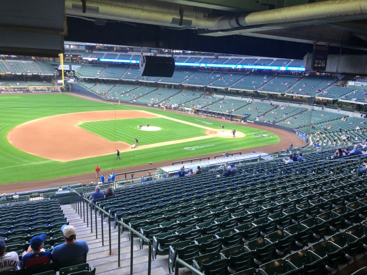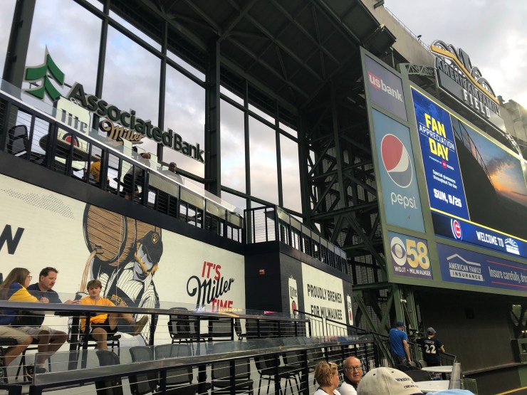 On the 400 level, fans can sit closer to the front in the Terrace Box, or farther up in the traditional nosebleeds, here called the Terrace Reserved. It was from this Terrace Reserved section that a “Let’s Go Cubs” cheer spawned after an early rally by Chicago. The jodie quickly evanesced when nearby Brewers fans countered, more from an annoyed sense of responsibility than from candid fervor.