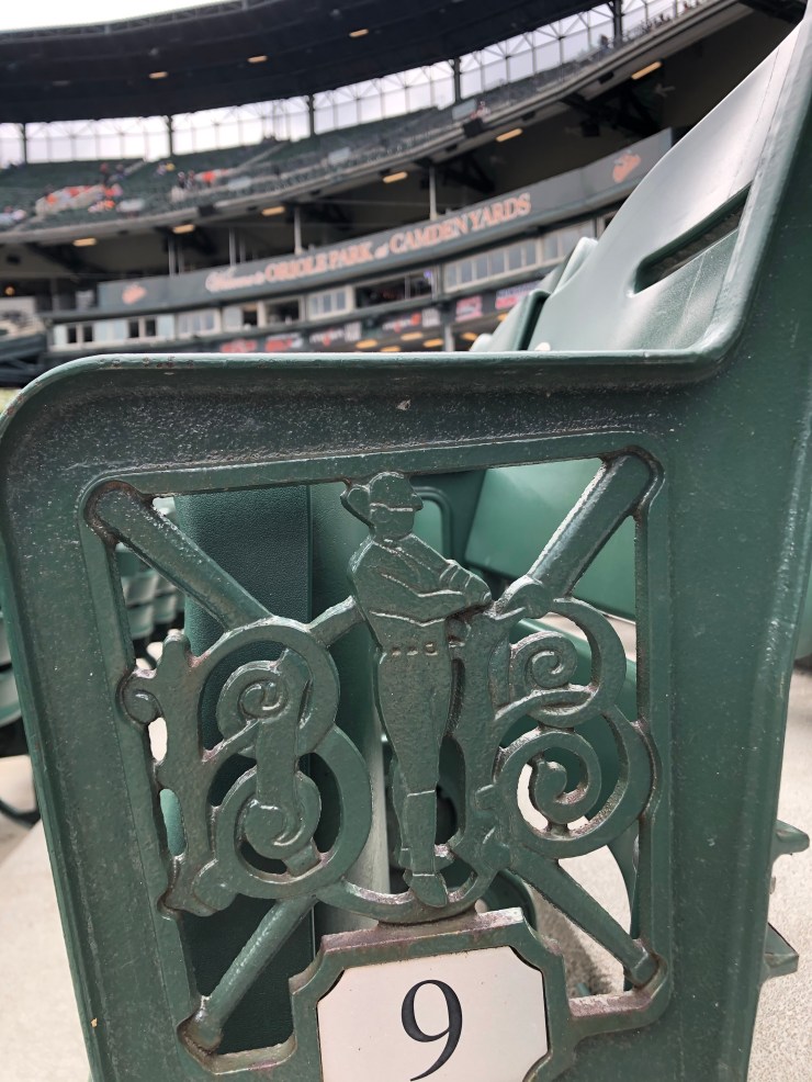 Janet Marie Smith, an architect who became the Orioles’ vice president overseeing stadium design and construction, wanted these ornate seat logos to resemble the script logos on benches in Tiger Stadium and Polo Grounds.