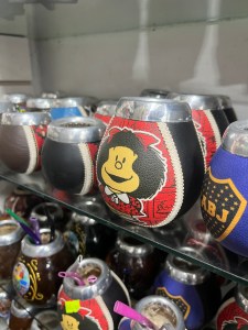 In the early afternoon, my comrades and I Ubered to Caminito, a colorful, touristy street near a wharf. We passed several creepy Pope Francis statues and at least one Lionel Messi interpreter as we popped in and out of shops wondering who is the Charlie-Brown-style cartoon girl seen on so many mate cups.