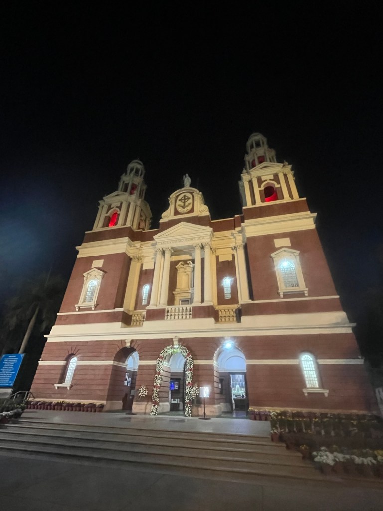 I rode an Uber from our hotel in Aerocity to the Sacred Heart Cathedral downtown. The chaotic streets began to live up to their promise as I soon realized that lane lines were suggestions at best and aesthetic accoutrements at worst. In most cases, four rows of cars occupied a three-lane-wide road. It helped that many of these vehicles were mopeds or motorized rickshaws barely wider than golf carts.