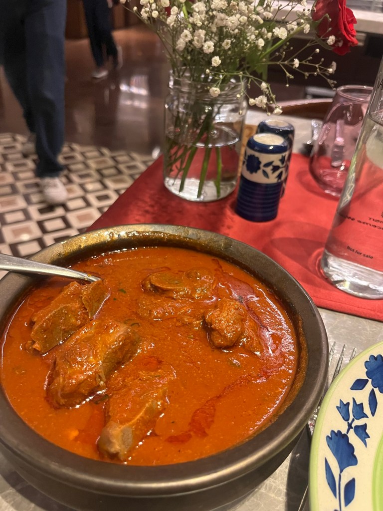 After our shopping spree, we ate lunch at the Salt Cafe in a private dining room vaguely overlooking the Taj. I say vaguely because an elevated metro line obscured the bottom half of the world wonder. As a train pulled into the station across the street, one of the crewmembers remarked, “Is this Epcot?”